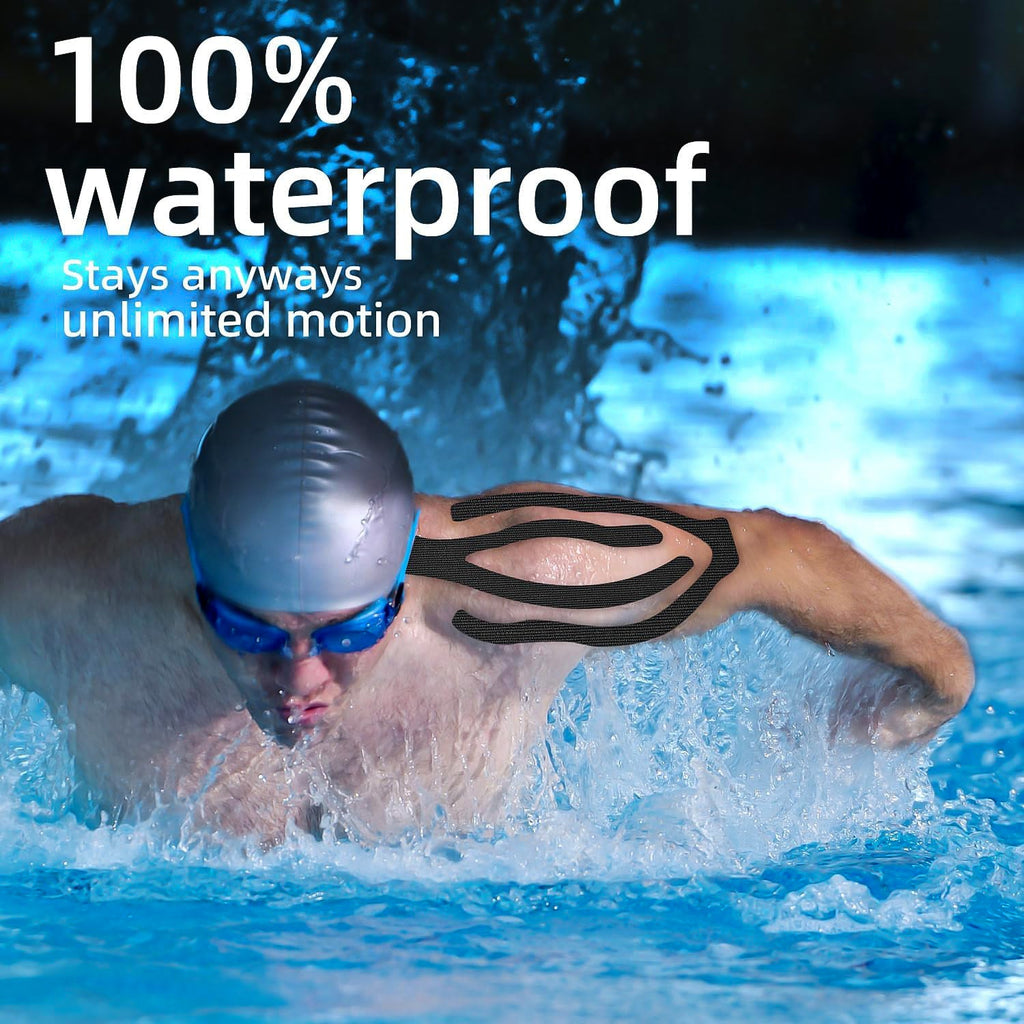 - Waterproof and hypoallergenic, our Physiotherapy tape will stay on knees, elbows, and feet through the toughest workouts for days at a time, without irritating sensitive skin. Designed for use by professional athletes, as well as for home first aid, this synthetic tape is perfect for muscle injuries and recovery.