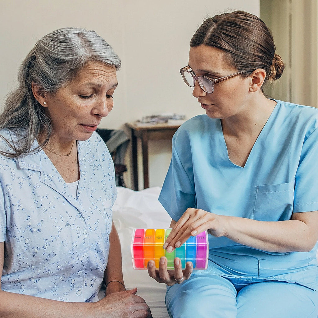 pill box , medicine storage , pill dispenser , medication sorter , weekly medicine tracker, travel pill case , daily pill reminder , rainbow pill box , compartmental pill case